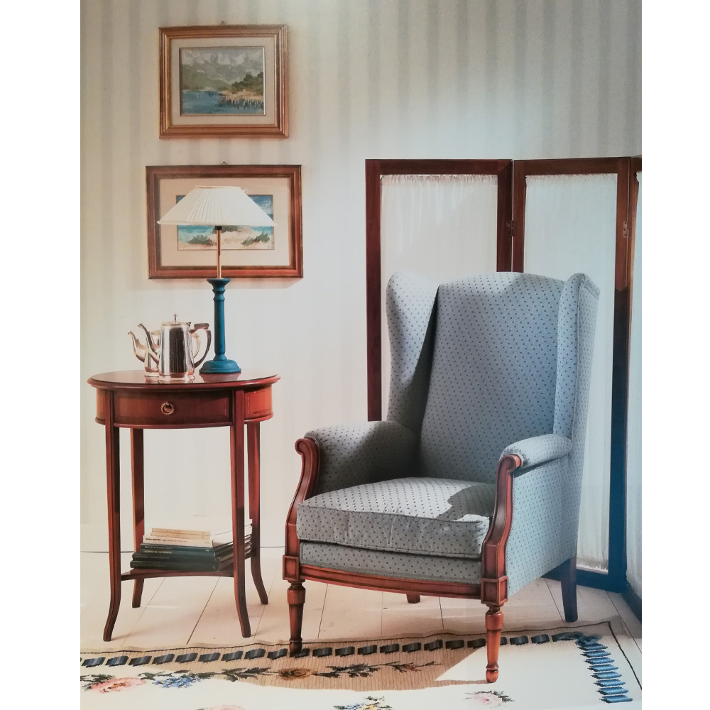 - καπάκι ξύλινο, διακριτικό μαρκετερί, ένα συρτάρι, χαμηλό ράφι