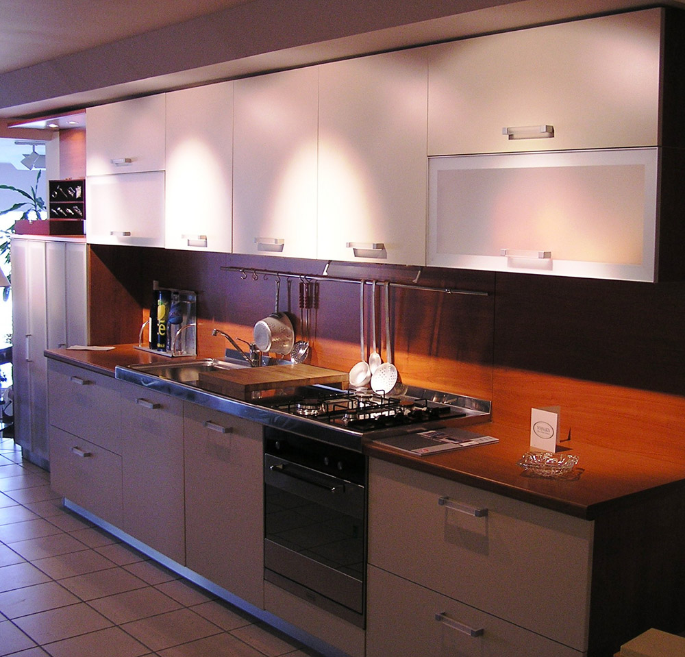 Μοντέρνα Ιταλικη κουζίνα. Προσφερεται σε "ειδικη τιμη". Ειναι σε αποσυρση απο την εκθεση της Εταιριας. Παρεχονται λεπτομερη σχεδια για ανασυνθεση, στον χωρο που προοριζεται.