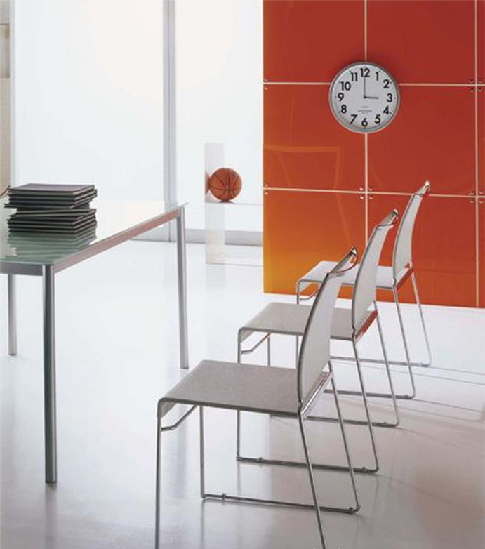 Προέλευση Ιταλία. Μοντέρνος σχεδιασμός, μεταλλικός σκελετός σε απόχρωση χρώμιου και κρυστάλλινη επιφάνεια.
