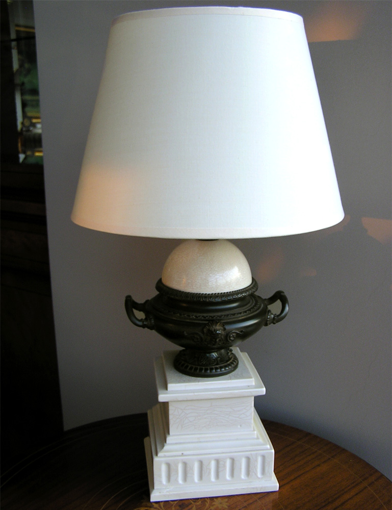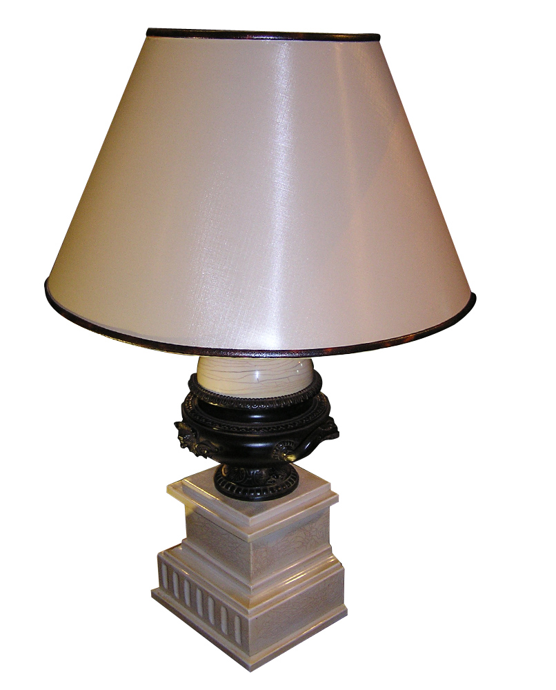 Επιτραπέζιο φωτιστικό σε λευκη ματ επιζωγραφισμενη πορσελανη με περιτεχνο διάκοσμο.