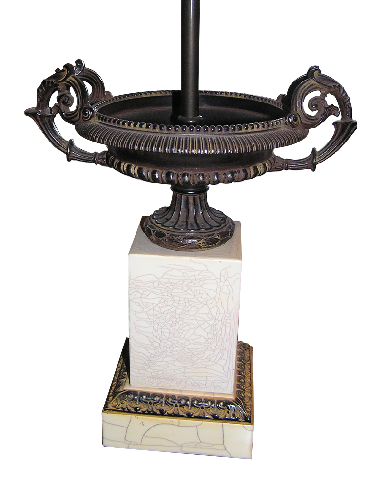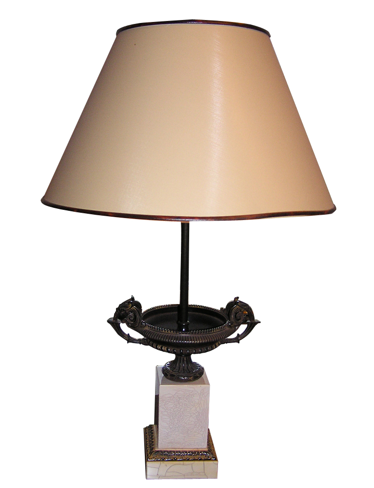 Επιτραπέζιο φωτιστικό σε λευκη ματ επιζωγραφισμενη πορσελανη με περιτεχνο διάκοσμο.