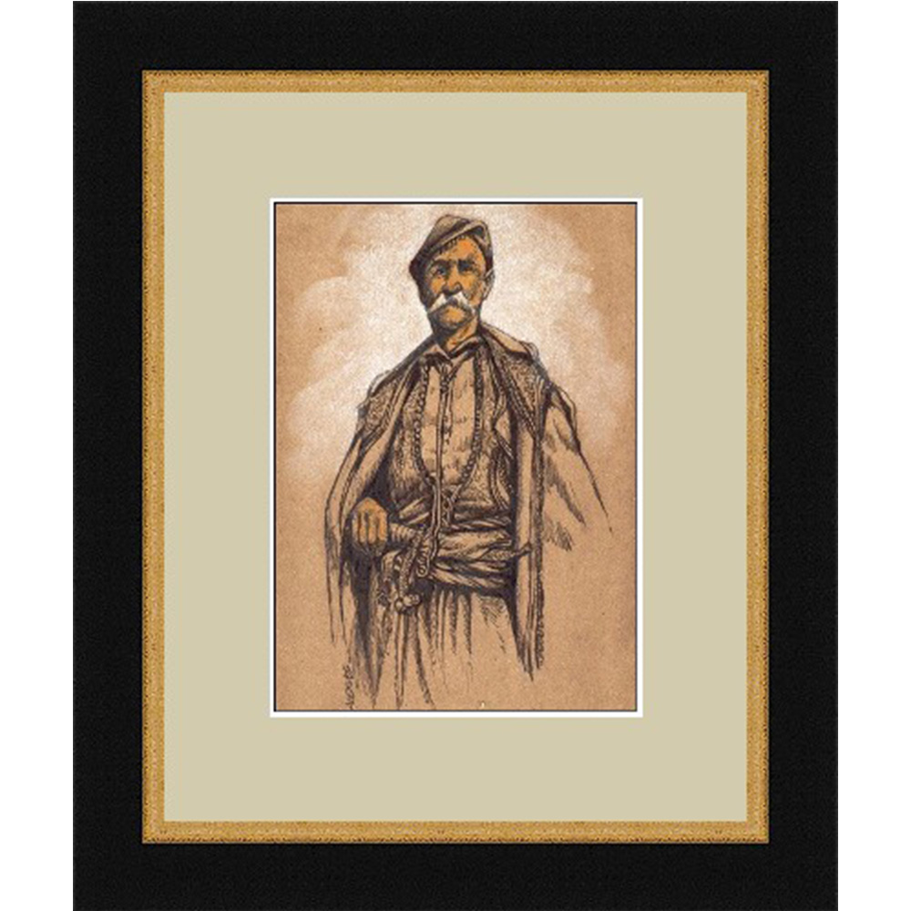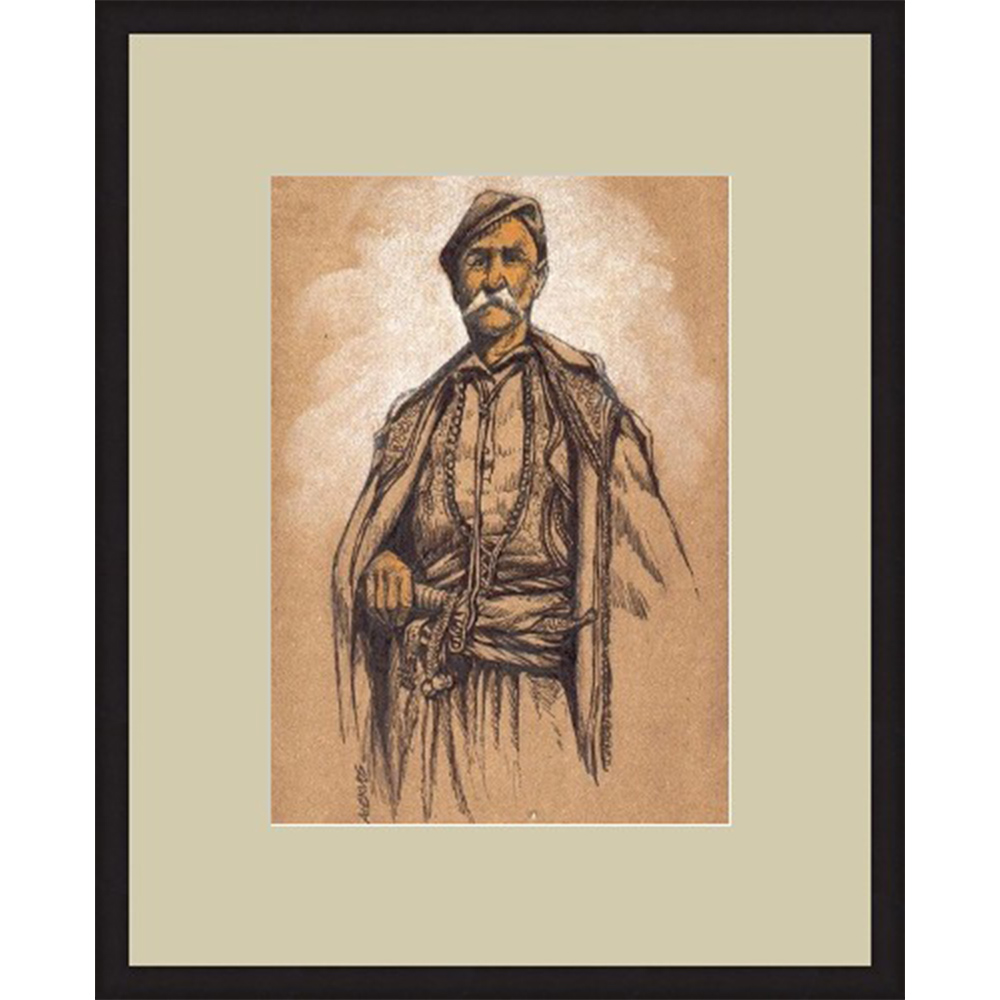 Πίνακας, αυθεντικό σχέδιο με σινική μελάνη και μολύβι στο χέρι, θέμα παραδοσιακή ανδρική φιγούρα Κρητικού.